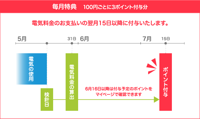 ※電気料金の引き落としのタイミングは、お客さまがご契約のクレジットカード会社によって異なります。 詳細はご契約中のクレジットカードの契約内容をご確認ください。
